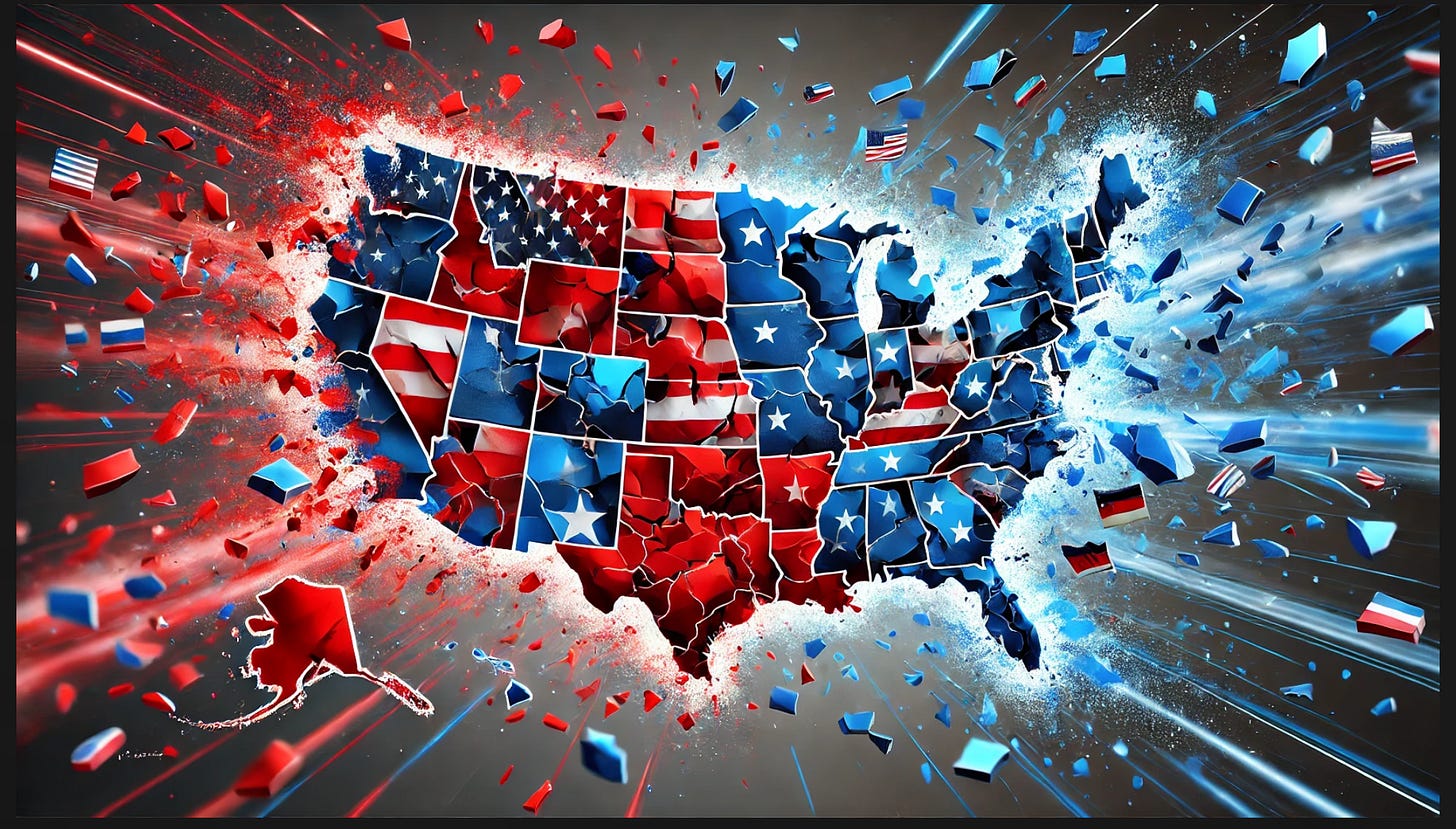 Talk about Splitsville! If, by that, we mean a situation in which the US consists of two more “nations” residing in a single geo-political entity—and we do—then there you have it: One nation includes men perpetrating violence and brutality against citizens as well as non-citizens; breaking into and entering homes, cars, and workplaces without judicial warrants; flooding into blue cities wearing cosplay jungle camo (in snowy winter) and tactical gear; showing up at Home Depot parking lots and elementary schools as though on the front lines at Falluja; gang-tackling teenagers, shooting unarmed civilians, roughing up grandmothers, dragging mothers into vans and leaving their children unattended, all to consign these abducted victims to either domestic concentration camps or torture prisons in foreign countries and, all the while, filming these depredations for the entertainment of perpetually-aggrieved, self-pitying morons.*